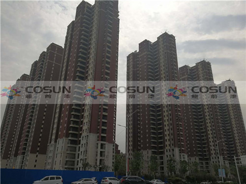鄭州中建七局森林上郡工地施工面積16萬平方,為了追求高端社區(qū)的需要,能從視覺上彰顯整個建筑的高雅與莊重之美,選擇了天然真石漆做為外墻專用漆。